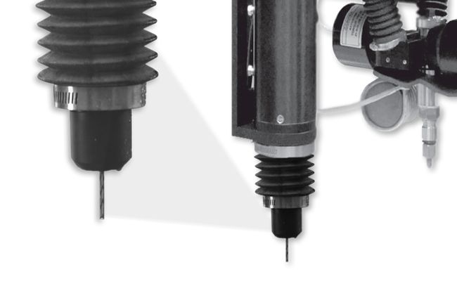 一款OMAX設計的氣動鉆頭, 能在水刀切割的工作環境下運作。能夠在復合材料和迭層材料上準確地打孔。鉆頭專為OMAX定制, 它可以于開始切割前在復合材料和迭層材料重復鉆孔, 能夠在厚板里鉆出直徑很小的孔。配備Intelli-MAX? innovation, 你不需獨立為鉆孔編程。OMAX的鉆頭是安裝于Y軸行走機構, 當不需要鉆孔時, 可以沿Z軸方向移除鉆頭。 鉆頭不需要額外能源。