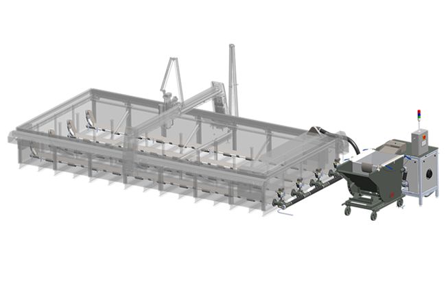 · 水刀運作時, 大型除砂系統透過PLC系統自動運作