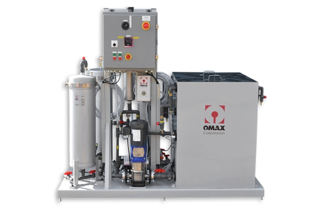 OMAX的水循環系統把多出來的可用水再次流到系統內, 滿足水質規格后,再次流到高壓泵。過濾系統會困住懸浮顆粒, 確保流到高壓泵中的都是附合規格的凈水。此外, 臭氧發生器會減少細菌的生長。