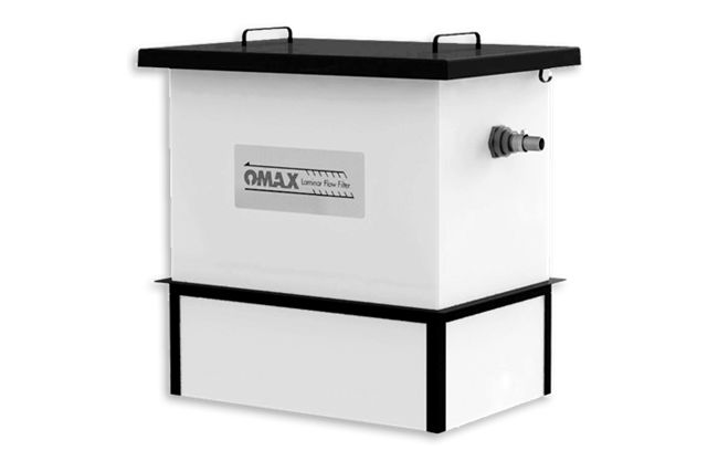 這沉淀缸能有效清潔水床中多出來的水, 處理后可循環再用或排到下水道。當水進入OMAX的廢水沉淀過濾器后, 水中的顆粒會因地心吸力而沉淀在缸內. 此功能附件有一組傾斜的薄片, 沉淀時把輕細的顆粒困住. 顆粒最后會沉淀到水缸的底部, 而凈水會進入閉合循環系統或排到下水道. 清理廢水沉淀過濾器中的沉淀物也很簡單容易。